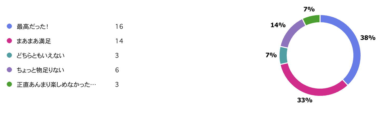 最高!まあまあ満足!と答えてくれた人が多かったです!みなさん夏休みを楽しめたようで嬉しいです☺️